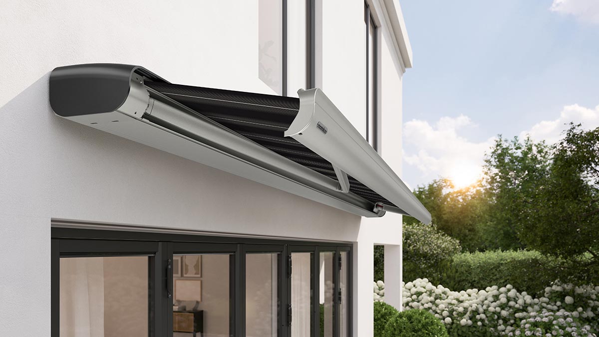 Die Optik einer Kassettenmarkise mit der Leichtigkeit der Halbkassette. Die rund geformte Schale bietet Schutz für das Markisentuch und lässt sich individuell anpassen.